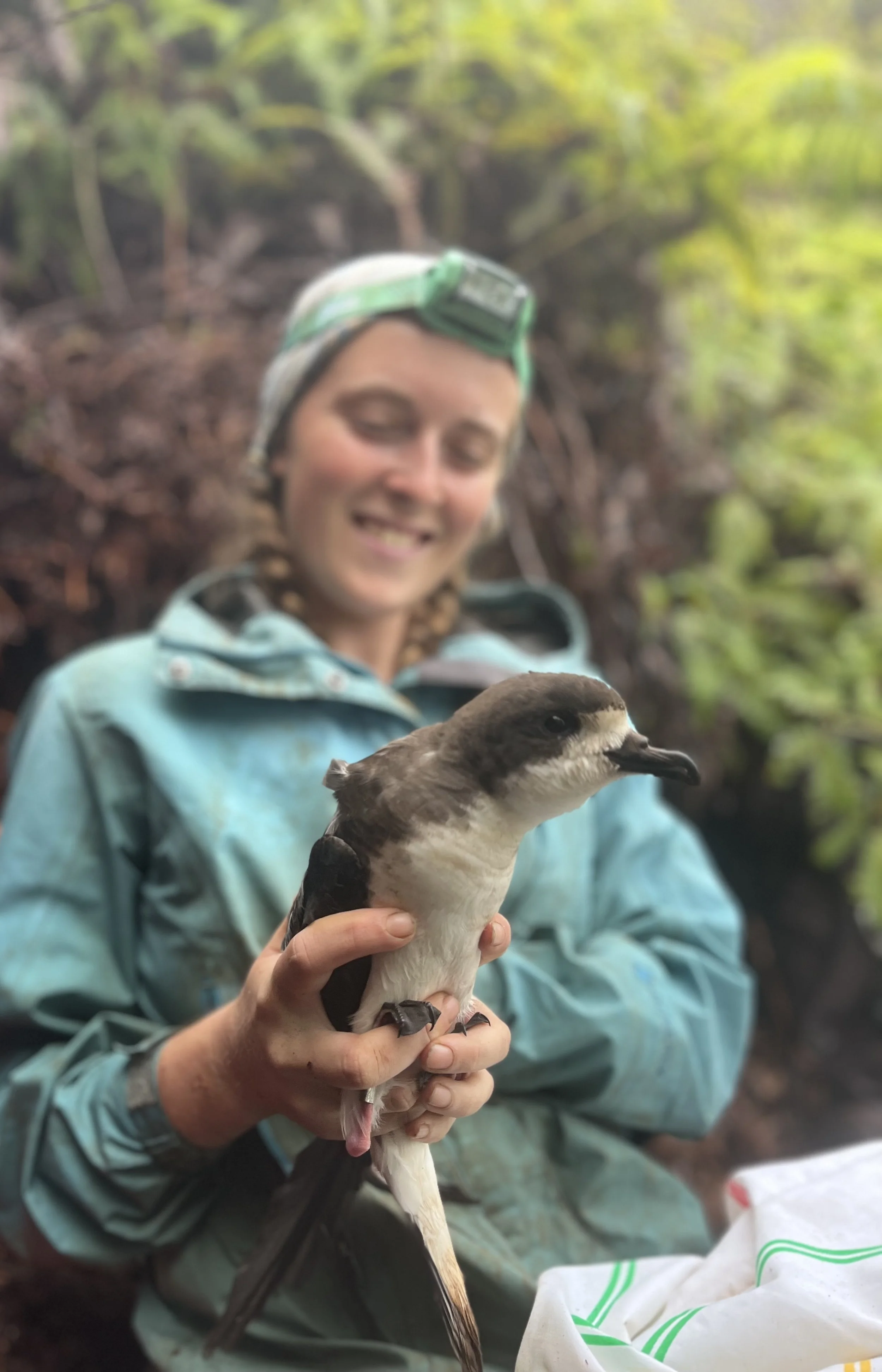 Emmylou focuses on seabirds, sentinels of ocean ecosystem health which can be used as bioindicators of contaminants in marine food webs. Her research is on the plastic exposure of ʻuaʻu, an endangered petrel species endemic to Hawaiʻi that forages in high-risk regions, such as the Great Pacific Garbage Patch. She uses ʻuaʻu boluses, stomach contents, and guano to quantify their plastic ingestion and her research will pair this data with eDNA metabarcoding analysis of their diet to describe the trophic transfer of plastic via their prey.